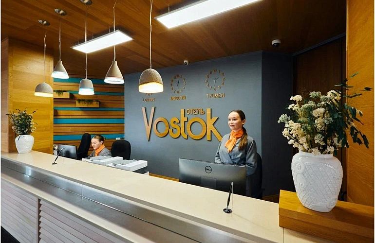 Отель-музей Vostok находится в деловом центре города. Привлекателен для гостей Тюмени приятными ценами, уютными номерами, рестораном с изысканным меню и необычным ателье «Абрау-Дюрсо». Здесь можно почитать книгу в библиотеке, украшенной полотнами местного художника Ивана Станкова, или сходить в Музей тюменского гостеприимства. Тем более, ценные экспонаты находятся на каждом этаже отеля, и любой желающий может познакомиться с культурным и историческим наследием тюменского края.