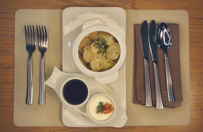 Ресторан славится специально разработанным меню с большим выбором блюд с сибирским характером. Насладитесь необычными блюдами с сибирского стола: строганиной из северного муксуна, котлетами из щуки, пельменями из квашеной капусты с салом или из утки с пряным соусом, а также хвойным мороженым с шоколадом и кедровыми орешками.