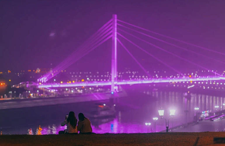 Мост Влюблённых получил своё название в 2003 году в День всех влюблённых, когда здесь прошел конкурс на самый долгий поцелуй. С тех пор это самое популярное место для молодожёнов. В очертаниях моста угадывается геральдический символ города – огромный корабль с раздувающимся парусом.