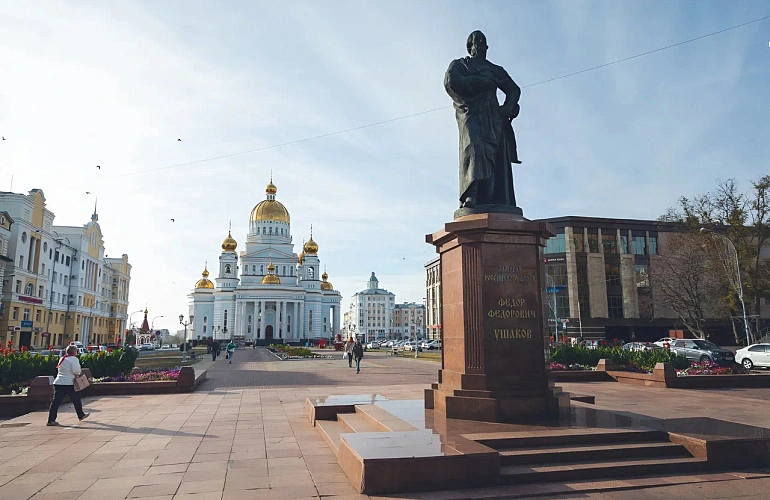 Кафедральный собор святого праведного воина Феодора Ушакова стал одним из самых высоких среди вновь построенных культовых сооружений последних лет в Приволжском федеральном округе. Его высота — 63 метра. Основной цвет собора — светло-голубой. В наружной отделке использован белый мрамор. В храме установлена рака с мощами святого Фёдора Ушакова. Над храмом расположена смотровая площадка, с которой открывается панорама всего города с прилегающими окрестностями, а также других храмов нашего города.